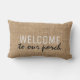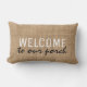 Moderne rustieke jute Welkom op onze Porch Familie buitenkussen. U kunt de tekst eenvoudig wijzigen.