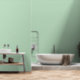 Klein klaverpatroon op lichte salie groene achtergrond voor rust, rust en verfrissende moderne huisinrichting