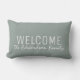 Moderne rustic green faux burlap Welkom, monogram van de familie, kussen.