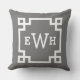 Stijlvol en modern vierkant lijst met vierkante accenten is voorzien van een Grieks zeer belangrijk ontwerp van het grensontwerp en een monogram dat kan worden gepersonaliseerd. Koolsteengrijze en witte kleuren. De achtergrondkleur kan worden gewijzigd.