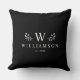 Knuffelen in stijl! Onze moderne stijlvolle monogram kussen, aangepaste familie charme op zwart. Gezellig comfort, gepersonaliseerd voor uw nest. #HomeDecor #MonogramMagic Modern elegant monogram aangepaste naam pasgetrouwde gooi kussen met uw familienaam en initiaal en we jaar gevestigd omringd door grillige tak illustraties. Minimalistisch, eenvoudig en stijlvol, dit zwart-wit kussen is een perfect gezellig huwelijksgeschenk!
