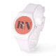 Modern Nurse RN Sinaasappel Terracotta Custom Watch heeft een witte band en donkere perzik met "RN" in grijze letters · Klik op Aanpassen om naar uw beroep te veranderen (bijvoorbeeld: NP, RN, LPN, CNA)