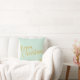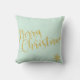 Modern chique lichtblauw typografie script Vrolijk kerstfeest decoratief accentkussen met een goudblauwe sneeuwvlokken en ornamenten boompatroon op de rug..