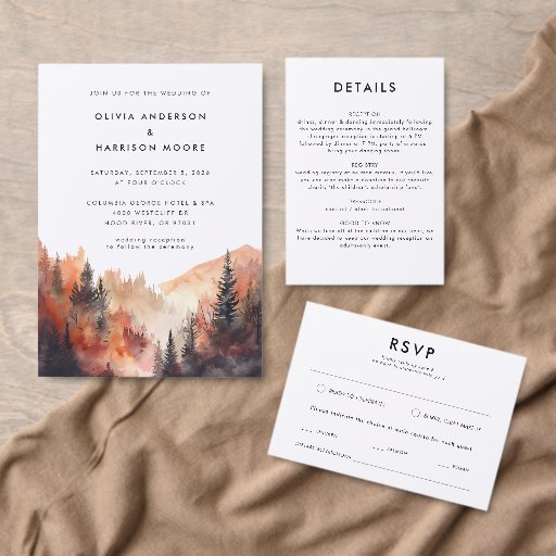 Modern Watercolor Fall Mountain Range WeddingOntworpen door Martina K.B.