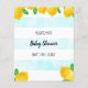 Deze bingo-kaarten zijn perfect voor iedereen die dit jaar een baby shower heeft. Het ontwerp biedt heldere gele citroenen op een turquoise en witte gestreepte waterverf achtergrond en gemakkelijk te personaliseren sjabloon formulering. Neem deze bingo-kaarten gewoon op wanneer je je passende babydoucheuitnodigingen stuurt... kunnen je gasten dan elk vierkant invullen met elk cadeau dat ze denken dat de baby krijgt bij de douche... vijf in elke richting wint een prijs.