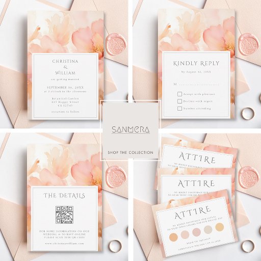Modern Watercolor Blush Peach Floral WeddingOntworpen door Linda Lee