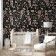 Rustieke boho waterverf terracotta bladeren gebladerte op zwart, schil en stok behang ontwerp. Perfect voor een doe-het-zelf project voor een accentmuur, of voor een huurappartement om de inrichting te verheffen. pasteltinten.