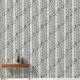 Dit moderne behang is voorzien van handgetekende berkenbomen met rode kardinaalvogels op takken in zwarte inkt, met schaduw gedaan in cross-hatch stijl, tegen een elegante salie achtergrond.