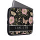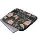 Moderne Wildflower Botanische Zwarte Bloemen Monog Laptop Sleeve