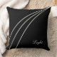 Moderne witte abstracte golvende lijnen op zilverzwart Sierkussen. Eenvoudig maar elegant ontwerp komt overeen met de meeste kleuren. Tekstkalligrafie kan worden gepersonaliseerd.