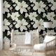 Moderne Witte Magnolia Bloemen op Zwart Behang