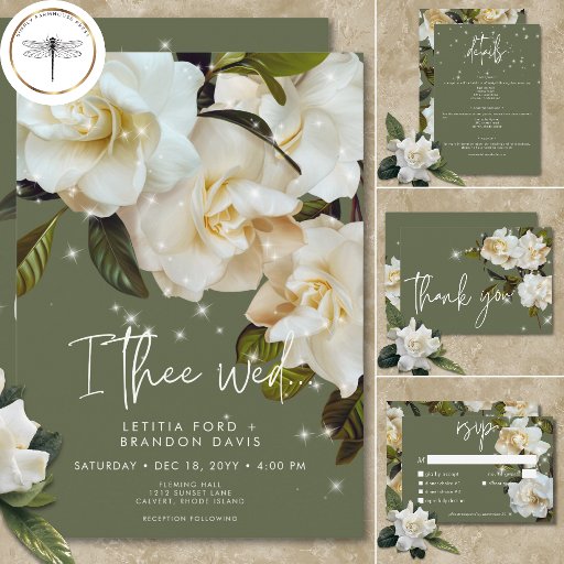 Modern White Gardenias on Sage Sparkle WeddingOntworpen door Kathe Santillo