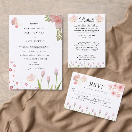 Moderne zachte roze bloem en vlinder Zomer Trouwbenodigdheden,minimalistische Stijl die gemakkelijk kan worden