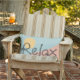 Moderne zomerkleuren roze en blauwe zonneschijn Ontspan lumbale kussen voor buiten.