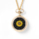 Botanische bloemenhorloge ketting, met een gele zonnebloem op een zwart-wit ontwerp. Een stijlvolle aanvulling op uw accessoire-collectie.