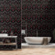 Moderne zwart en rood damast gotisch behang
