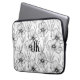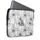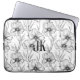 Moderne zwart-witte bloemen monogrammed laptop sleeve