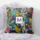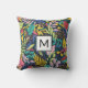 Moderne zwarte blokmonogram kleurrijke bladeren Ku Kussen