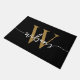 Meisjesachtig modern elegant stijlvol zwart en gouden monogram initiaal familienaam script aangepaste gepersonaliseerde deurmat. Dit ontwerp bevat een familienaam in een mooie handgeschreven zwiert letter font kalligrafie (of typografie) met monogram initiaal in goud en wit op zwart. Prachtig stijlvol vrouwelijk geschenk voor een nieuwe woning, ook voor verjaardag, trouwdag, bruidsfeest, jubileum, vrijgezellenfeest en Het is voor de meid die van schone minimalistische dingen houdt.