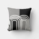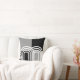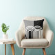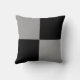 Een modern vormgegeven kussen met een neutraal zwart-wit vierkant blokpatroon achtergrond. Shows een wit patroon dat kan worden gewijzigd door het initiaal te wijzigen.