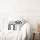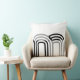 Een modern vormgegeven kussen met een neutraal wit en zwart vierkant blokpatroon achtergrond. Shows een wit patroon dat kan worden gewijzigd door het initiaal te wijzigen.