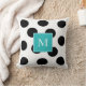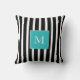 Moderne zwarte stippen strepen blauwgroen monogram kussen