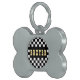 Creëer uw eigen aangepaste, gepersonaliseerde, gedurfde faux gouden rustige westerne script / typografie aangepaste naam aan voor- en achterzijde, en retro coole, stijlvolle, stijlvolle, stijlvolle, zwarte, gecheckte zwarte, gecheckte chequeachtergrond, UV-bestendig en waterbestendig, gepolijst, zilveren, beendervormige kattehond, puppy kitten kat ID. Voer gewoon de naam/jouw tekst van uw huisdier in om deze aan te passen. Ideaal voor verjaardagen, kerst, feestdagen, nieuwe jaren en nog veel meer voor eigenaars van gezelschapshonden/katten, vrienden en familie.
