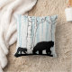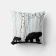 Als je van vogelbomen, herten, beren, natuur en wilde dieren houdt, dan hou je van deze kussen in zwart, blauw en wit. Met een berkenbos met blauwe lucht en een zwart silhouette moeder zwart beer en beer krab vooraan, een buck en doe hert achteraan!
