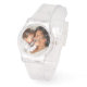 Een aangepaste foto horloge met een foto van moeder en Baby maakt een prachtige Moederdag, verjaardag, kerst, of andere speciale gelegenheid cadeau. Laad de door u gekozen foto in plaats van de voorbeeldfoto die wordt weergegeven in de sjabloon van het ontwerp. De voorbeeldfoto die in dit ontwerp wordt gebruikt, is een vierkante foto - deze vorm werkt het beste om het ontwerp goed te centreren. De horlogenummers zijn zilvergrijs met een slagschaduw in zwart om zichtbaarheid te garanderen met welke foto je ook gebruikt.