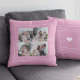 Trendy roze 4 foto collage Beste moeder ooit retro script typografie Moederdag gepersonaliseerd kussen. Perfect souvenir cadeau voor mama.