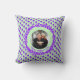 Stijlvolle en HAPPY MOEDERDAG Pillow met paarse harten tegen een vreedzame mijngroene achtergrond. In het midden is er een ronde FOTO omringd door een paarse florale kreet en de HAPPY-MOEDERDAG bevindt zich in gekromde tekst onderaan. Deze tekst is zodat kunt u een naam aan de groet toevoegen, en u kunt uw eigen geschikte foto uploaden. Ideaal geschenk voor Moederdag en vooral voor New Moms.