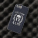 Een vette Spartaanse krijger helm Molon Labe laadt de uitdrukking van het masker op een fijne douanelefoon. Kom ze halen!