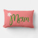 Kleine voorjaarsbloemen en bladeren met de tekst "Mom" zijn gemarkeerd op een lichte koraalachtergrond. Klik op "Aanpassen" om de achtergrond naar een andere kleur te wijzigen, indien gewenst.