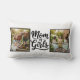This decorative lumbar pillow showcases the "Mom of Girls" phrase in a modern, textured brush script, centered between two spacious custom photo frames. The elongated format is perfect for displaying high-quality photography of daughters, while the stylish hand-lettering brings a trendy, boutique feel to any living room or nursery decor.
