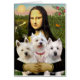 Mona Lisa, misschien wel het beroemdste schilderij ter wereld, is nu aangepast (met een 8 uur durende makeover), met drie Westies. Een prachtig, grillig cadeau voor de Westie-liefhebber in je leven. Mona Lisa is een favoriet van over de hele wereld.