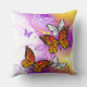 Oranje, gedetailleerde monboogvlinders op lichte, paarse, pictureske, geschilderde achtergrond.