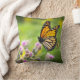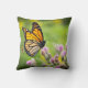 A beautiful Monarch butterfly sits on a patch of thistle while a pesky Goldenrod beetle lands on it's wing trying to chase the butterfly away.