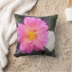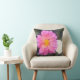 Roze en witte bloemen omgeven door groen bladeren op een kussen.