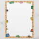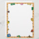 Dit briefhoofd bevat een grens met zakken geld, rekeningen, munten, kasregisters en safes.
