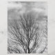Een monochroom afbeelding van herfstboom topjes tegen een bewolkte lucht.