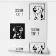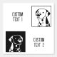Twee schattige gevlekte honden, elk in een vierkant. De afbeeldingen zijn spiegelpatronen van elkaar (d.w.z. één is wit met zwarte vlekken, en één is zwart met witte stippen) voor een interessant monochroom patroon. Er is ook aangepaste tekst om dit ontwerp te personaliseren.