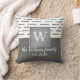 monogram aangepaste kussen grijs en white strees modern patroonontwerp met tekst die zich aan de wensen van het interieur of de bruiloft aanpast.