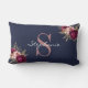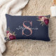 Monogram Aangepaste naam Roze Gold Burgundy Floral Lumbar Pillow op blauwe achtergrond voor je studentenkamer of nieuw huis. Eenvoudig aan te passen. Bestel vandaag nog!