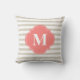 Monogram beige en koraalstrepen kussen