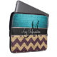 Monogram Blue Chevron Zigzag Burlap Jute Laptop Sleeve