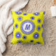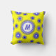 Blauw digitaal bloempatroon op felgele achtergrondkussen maakt een geweldig zomerdecor!