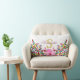 Boho Lumbar Pillow met monogram bloem/bladeren. с kleurrijke tak met paarse, blauwe, roze, gouden, groene bladeren en roze hibiscus bloemen. Golden monogram + paarse naam. Een geweldig gepersonaliseerd cadeau.
