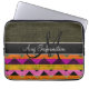 Monogram Dark Green Chevron Zigzag Burlap Jute Laptop Sleeve