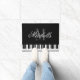 Elegant Black en white grand piano keys monogram deurmat. Maak uw eigen douane monogrammed binnenshuis/outdoorvorm met douane achtergrondkleur en tekst. Voeg uw eigen welkomstbericht, familienaam, achternaam, initiaal letter of grappig citaat toe. Cute gift idee voor nieuw thuis/huishouden, trouwplaats, winkel, instrumentwinkel, bedrijf kantoor, zakenwereld, band, klassieke muziekorkest, trouwgebeurtenis, enz. Stijlvolle scripttypografie. sjabloon. Creëer je eigen klasje mat / tapijt voor de deur / ingang of hal. decor / decoraties voor uw chique huis. Een cadeauidee voor pianist, pianospeler, muzieleraar, pianoman, vader, moeder, student enz. Beschikbaar in kleine en grote afmetingen.