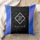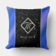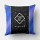 Monogram Elegant Black Marble & Royal Blue Folie Kussen